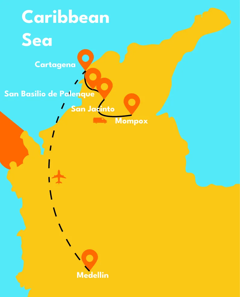 Medellín, Cartagena, San Basilio de Palenque, San Jacinto & Mompox
